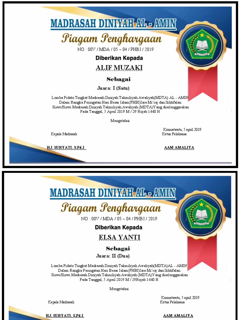 Download Contoh Sertifikat Piagam Penghargaan Lomba Adzan Hd Vuiral
